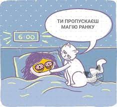 – Що ти любиш робити вранці, як тільки прокидаєшся?