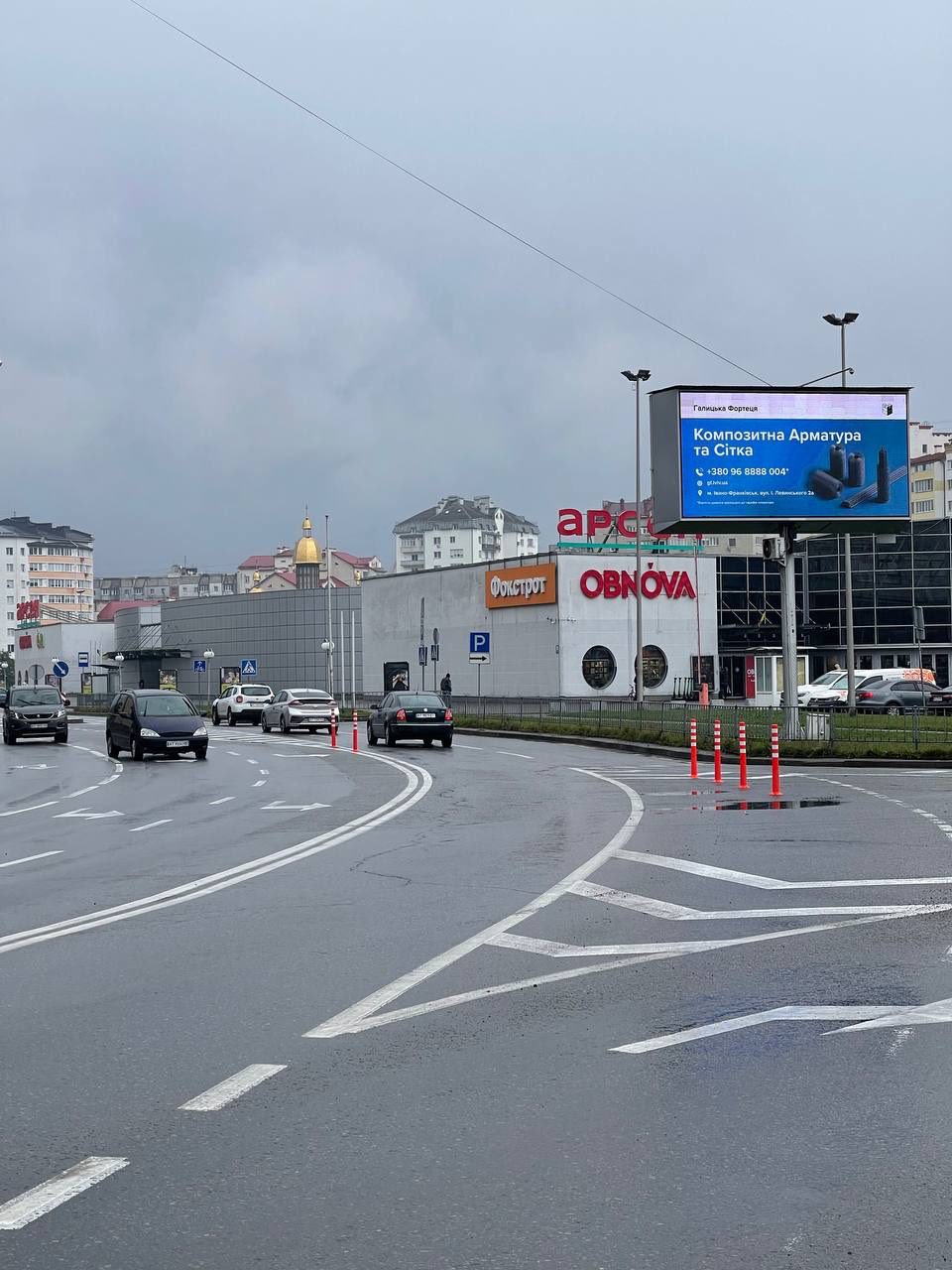 В Івано-Франківську встановлюють спеціальні стовпчики-делініатори на вулиці Миколайчука в районі торгових центрів “Епіцентр” та “Арсен”.