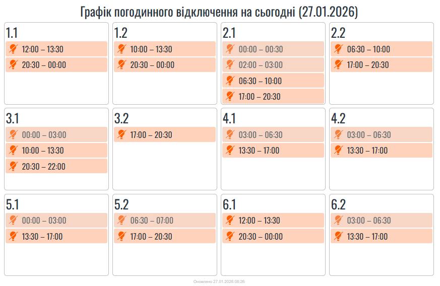 Графіки погодинних вимкнень на Прикарпатті 11 лютого