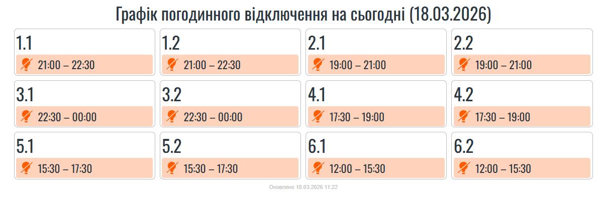 · 6 черга — з 12:00 до 15:30