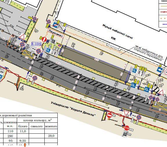- вул. Коновальця (від Січових Стрільців до Сахарова) — 38 місць, з них 4 місця для осіб з інвалідністю