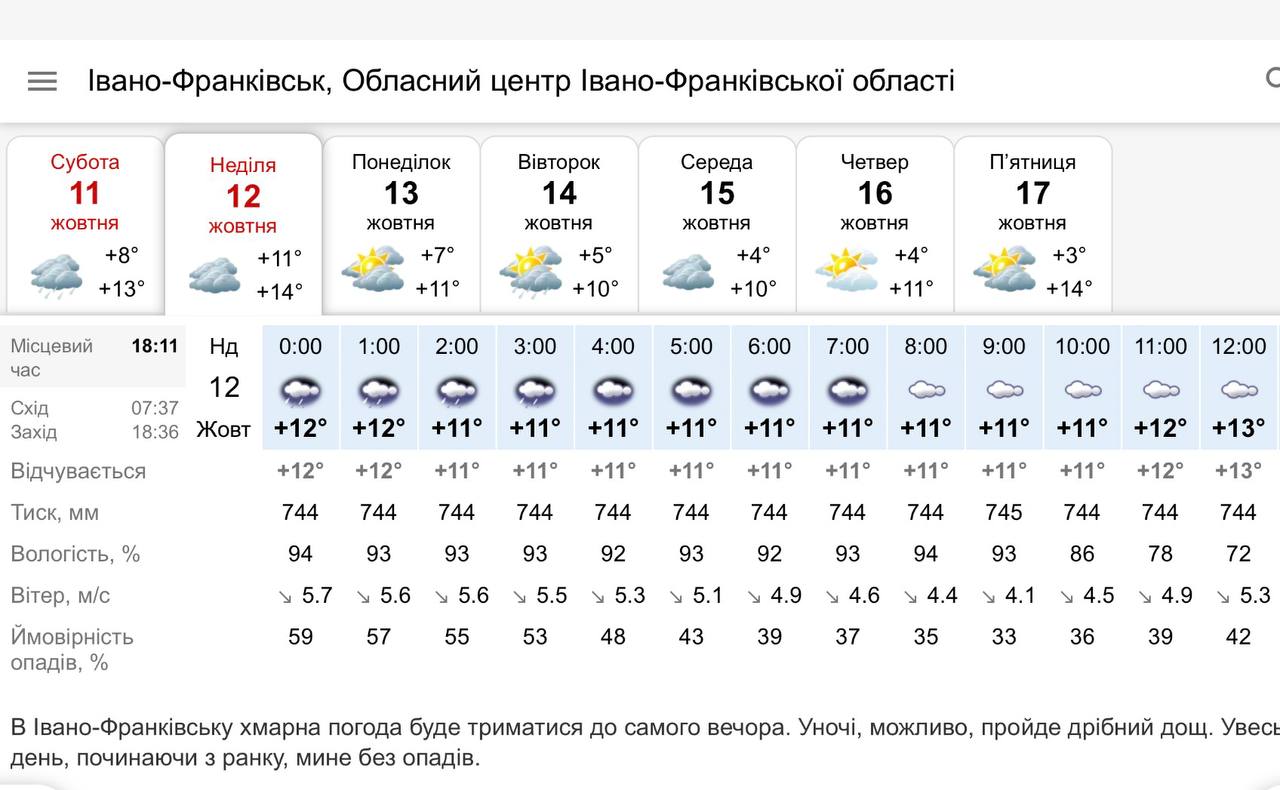 В Івано-Франківську сьогодні, 12 жовтня, хмарна погода буде триматися до самого вечора.