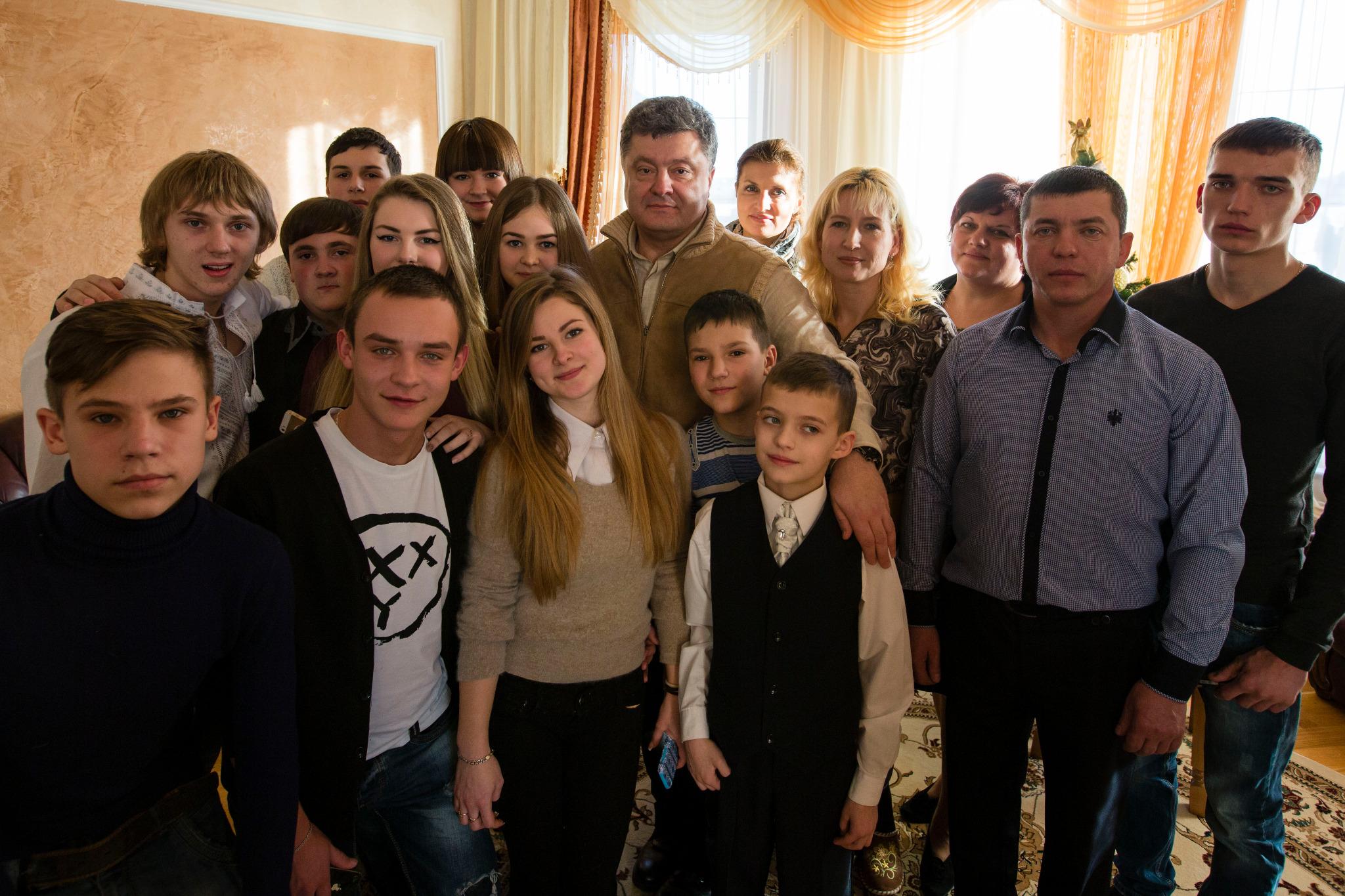 • У селі Дзвиняч Івано-Франківської області Президент Петро Порошенко разом із дружиною Мариною відвідали родину Смеречуків, яка прийняла на різдвяний відпочинок хлопчика із Костянтинівки, Донецької області. Глава держави поспілкувався з господарями та десятикласником Кирилом Зуділовим та ще дев’ятьма дітьми з Донецької області, яких приймають інші родини.