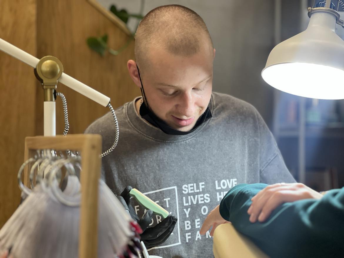 «Не знаю чому. Захотів і все, – сміється він. – З підліткового віку доглядав за своїми нігтями. У полоні допомагав підрізати нігті хлопцям, у яких були травмовані руки, пальці. Мені просто це добре вдається. Досить медитативний процес».