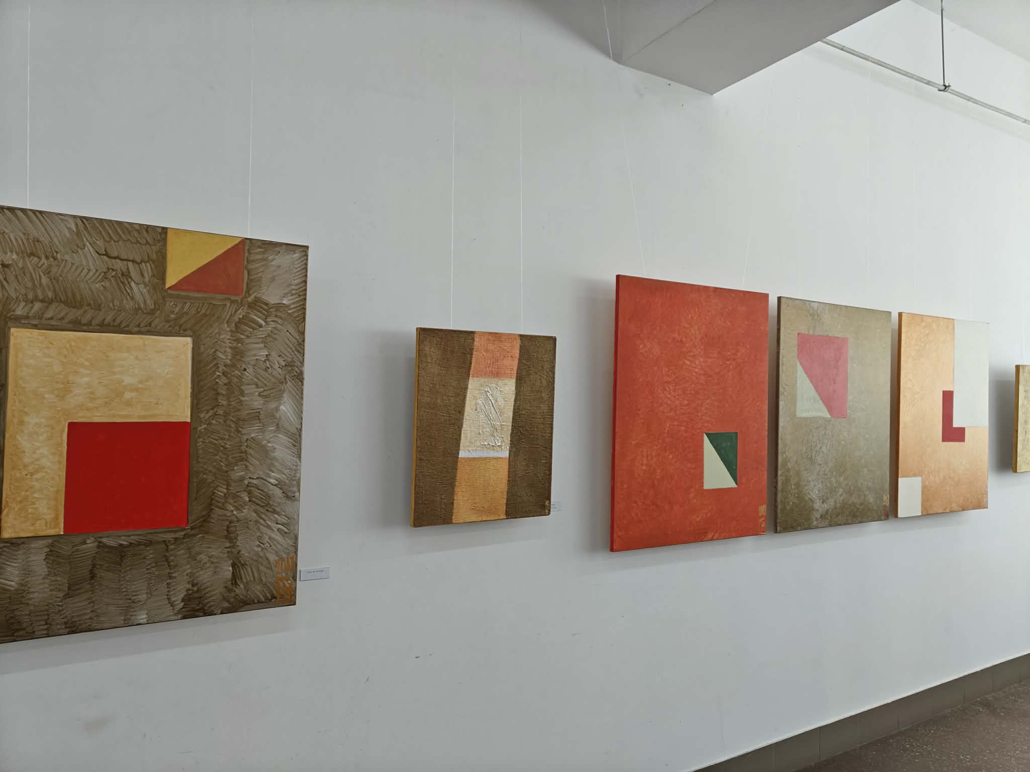 Саме про це для мене виставка робіт Галини Новоженець, яку я би назвала діалогом форми і кольору, за якими настрій, стан, своя особлива внутрішня драматургія із грою контрастів. Червоний, як-от у роботах «Вечоріє», «Урбаністичне», «Позачасовість» чи «Сакральний простір», він різний, по-різному читається, експресивний, імпульсивний, місцями нестримний, здається, що вихлюпнувся би, але чітка геометрія зобов’язує. І раптом великі площини світлого, золото, що розливається тишею. Тінь від світла, світло від тіні, що створюють ефект (ілюзію?) прочинених дверей. Таке дивовижне «ласкаво просимо» у тому ж таки «Сакральному просторі» чи «Смугах світла». Лабіринти, двері, вікна, що ведуть чи то до іншого простору, чи ще до іншого потаємного входу, чи до незримого світу за вікном. Мені роботи Галини Новоженець саме про це, але я, звісно, можу помилятися. А ще вони мені про те, що світло є таким особливим конструктивним началом, коли воно не просто освітлює, підсвічує, а прояснює і будує. Чорна геометрія на цьому тлі змінює ритм або створює візуальні паузи, змушує замислитися про те, чи матерія для простору, чи простір для матерії. У Галини Новоженець він таки стає окремою сутністю, світ без хаосу і метушні. Сама авторка про нього каже: