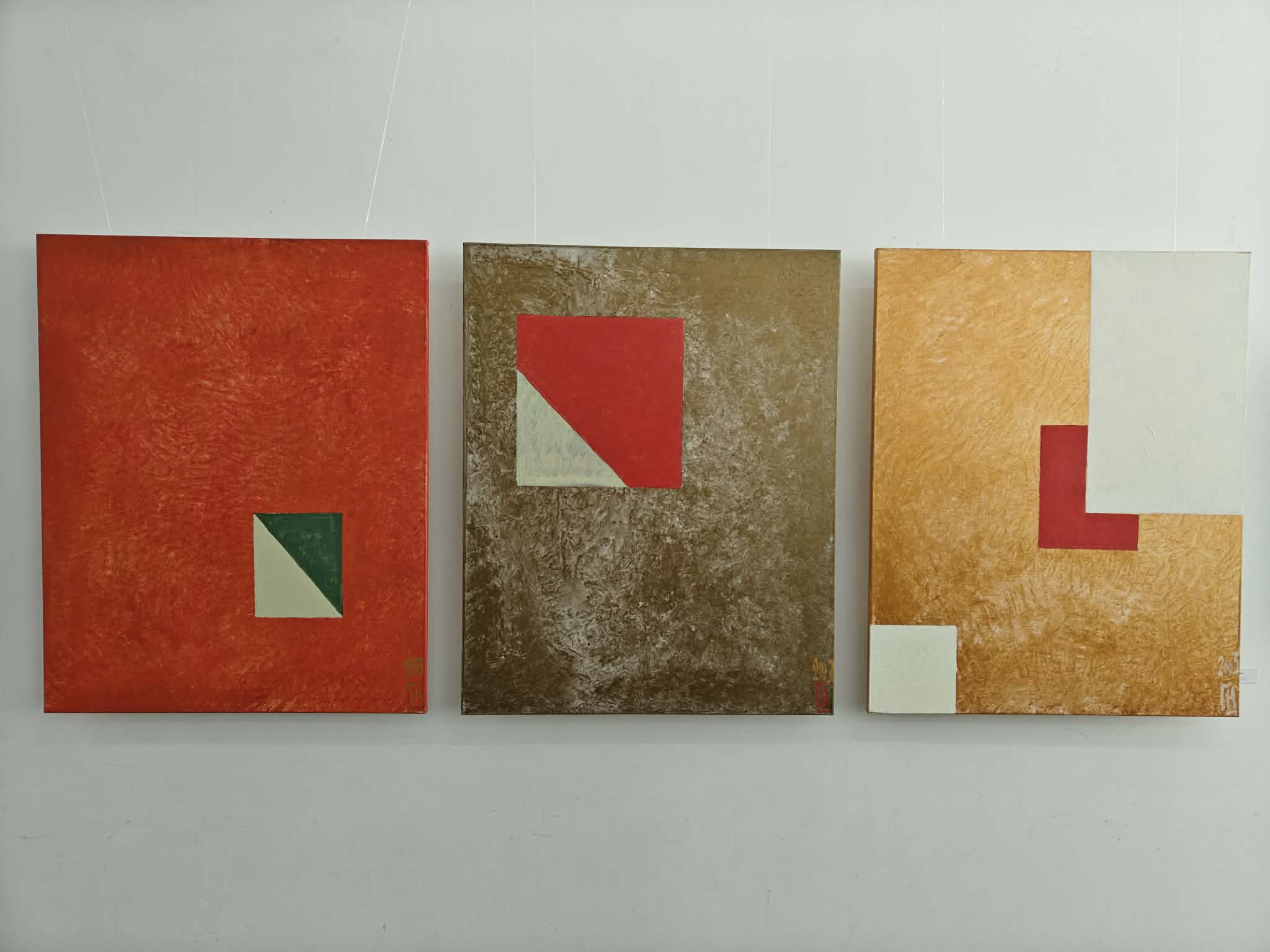 В одному з інтерв’ю вона згадала про те, що переосмислює давні канони через геометричні форми, тяжіючи до візантійського мистецтва з його домінантами: червоне, охра, золоте. Коли ти це знаєш, то ще інакше дивишся на її роботи, розуміючи, що тобі показують таку особливу таємницю, діляться таким особливим знанням, і ти не можеш цього не прийняти, хай і не все розумієш поки що.